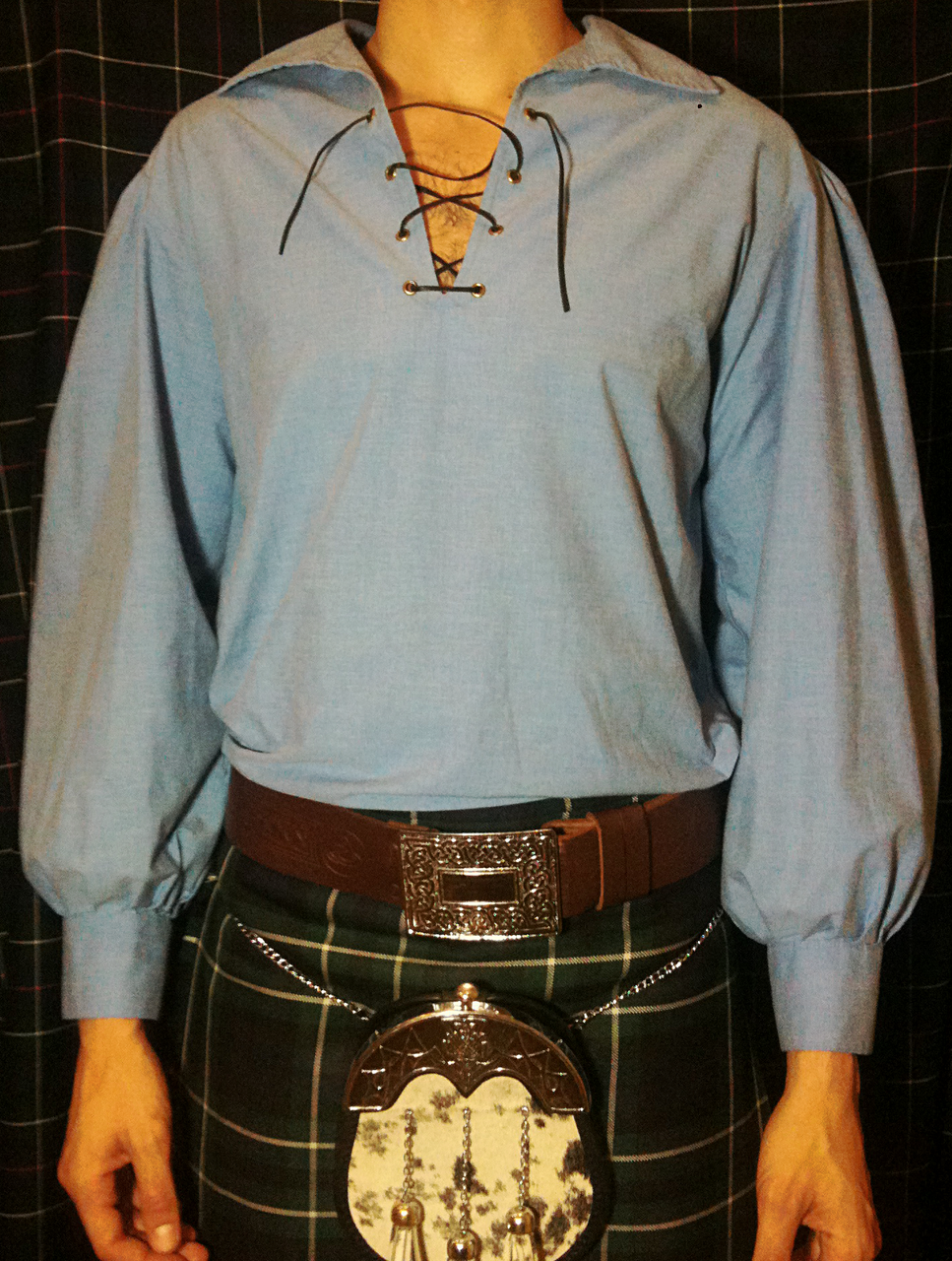 The Ghillie shirt (also known as a Jacobite shirt) is an informal shirt known for its distinctive criss-cross tie, similar to that seen on the Ghillie Brogue. A distinct part of highlander dress since before the 16th century, ghillie shirts are traditionally worn with kilts during informal situations, when the added mobility afforded by the ghille shirt’s comfortable design is of use. For example, sword fighting.